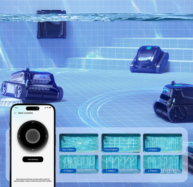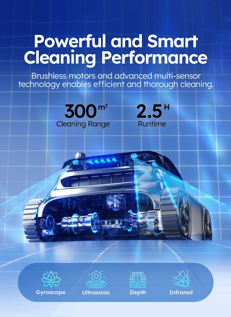 • Smart Control & One-Click Operation – App remote control and one-click-to-start/return for effortless navigation and full pool coverage, covering up to 300㎡.