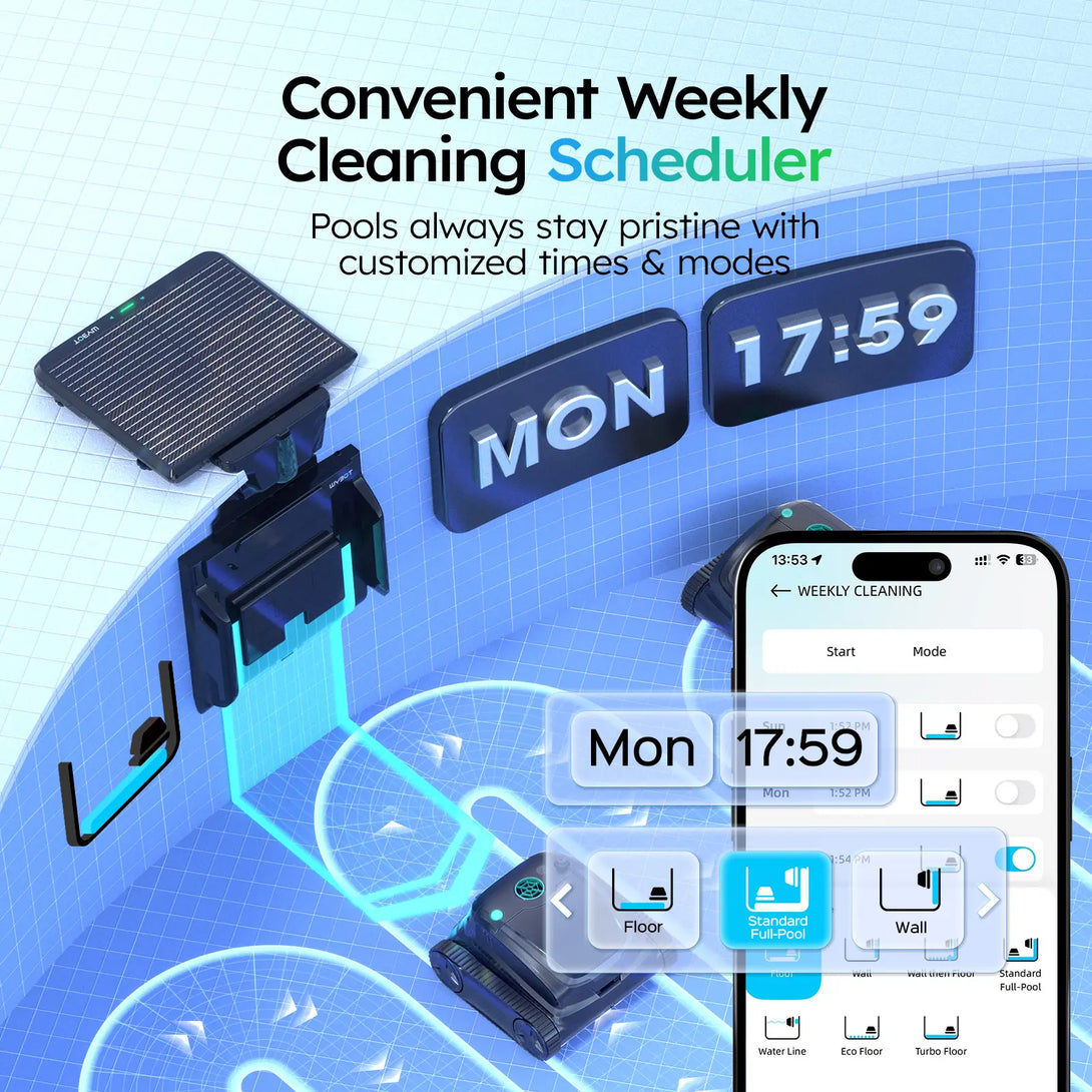 • Enhanced Scheduled Cleaning – Easily automate cleanings for the entire week with customizable times and modes for each day. The cleaner will automatically start at your preset schedule, providing hands-free and efficient operation.